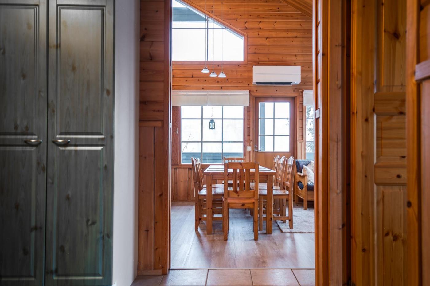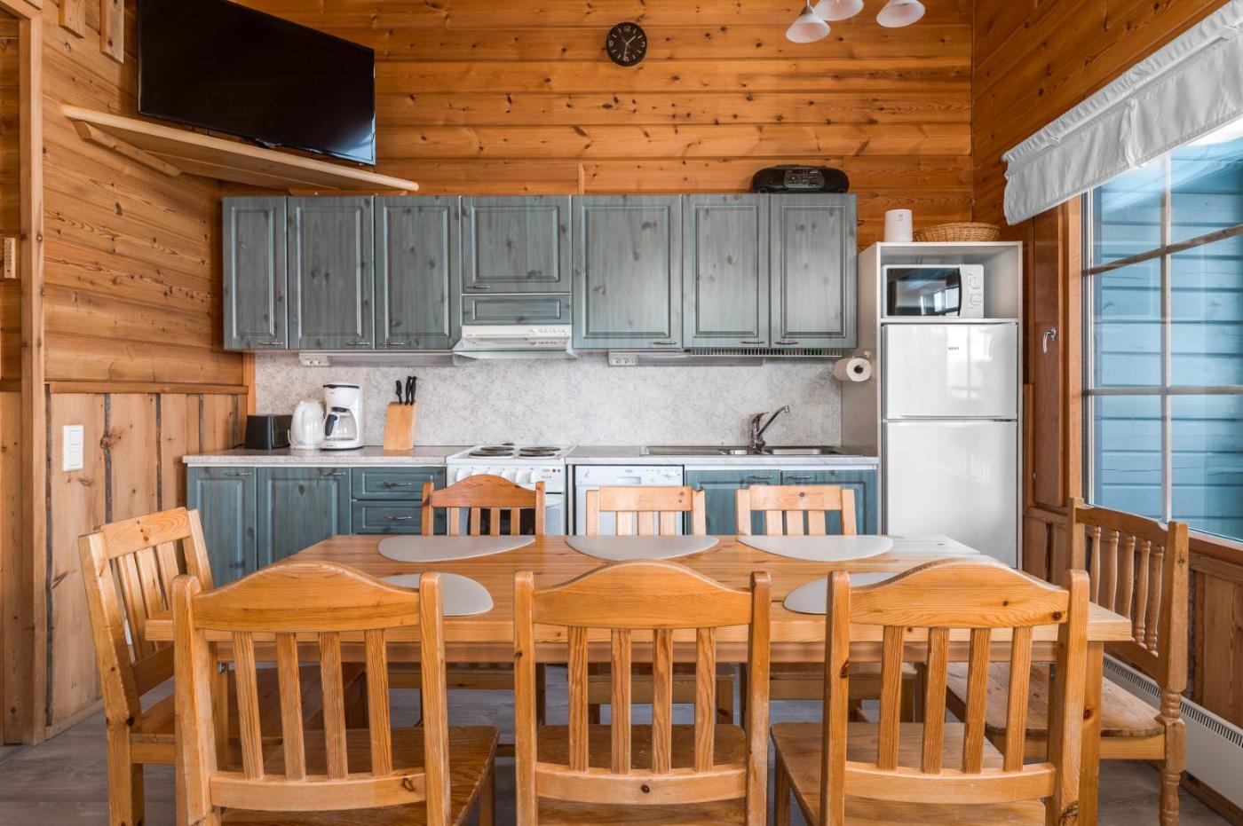 Three-Bedroom House. This holiday homes standout features are the sauna and fireplace. Boasting a private entrance, this air-conditioned holiday home includes 1 living room, 3 separate bedrooms and 2 bathrooms with a shower. Meals can be prepared in the kitchen, which is fitted with a stovetop, a refrigerator, a dishwasher and kitchenware. Featuring a terrace with garden views, this holiday home also offers a washing machine and a flat-screen TV. The unit has 5 beds.